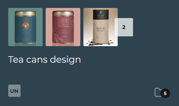 Project folders and files will be presented in two separate sections. The Folders section is shown in the upper part of the central panel. Folders are represented by folder cards (in the tiles view) or table rows (in the table view). An example of a folder tile is shown below.